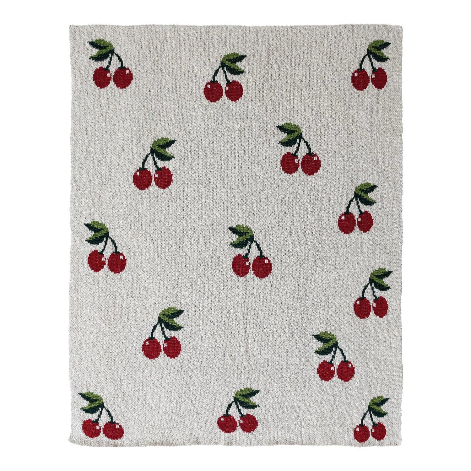 40"L x 32"W Cotton Knit Baby Blanket w/ Cherries, Cream Color, Red & Green