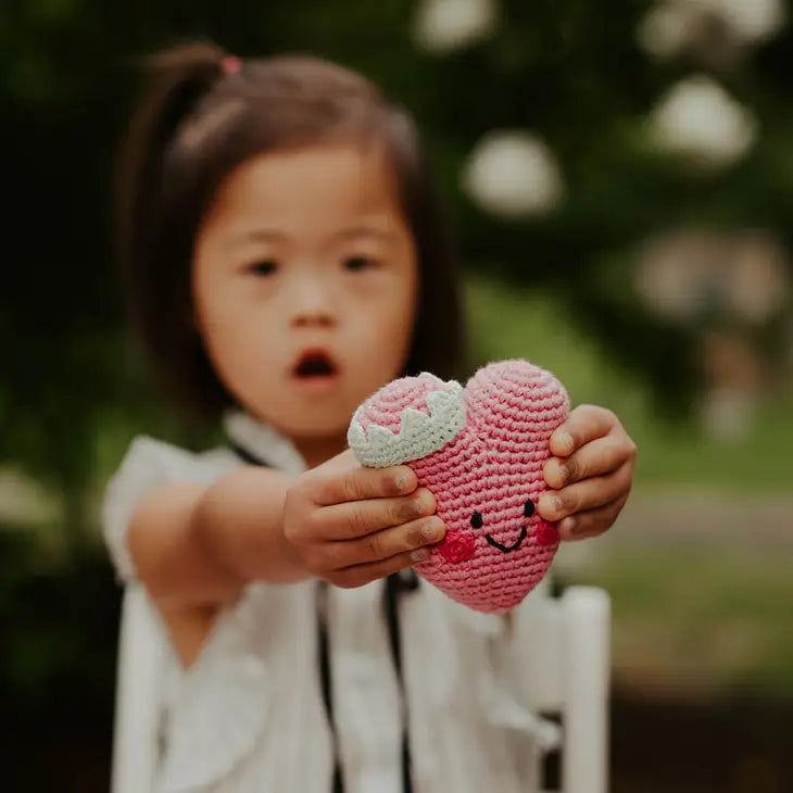 This soft heart rattle gathers love and sprinkles it round everywhere it goes. From the top of its golden crown to its constant smile, it is a bright reminder of the magic that holds us together. Perfect for baby's first rattle.